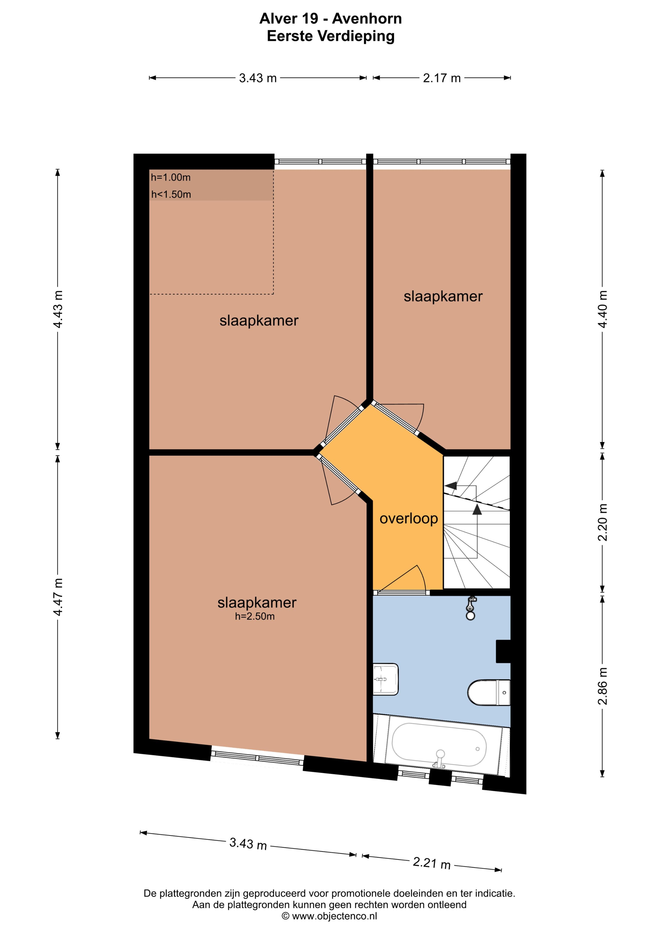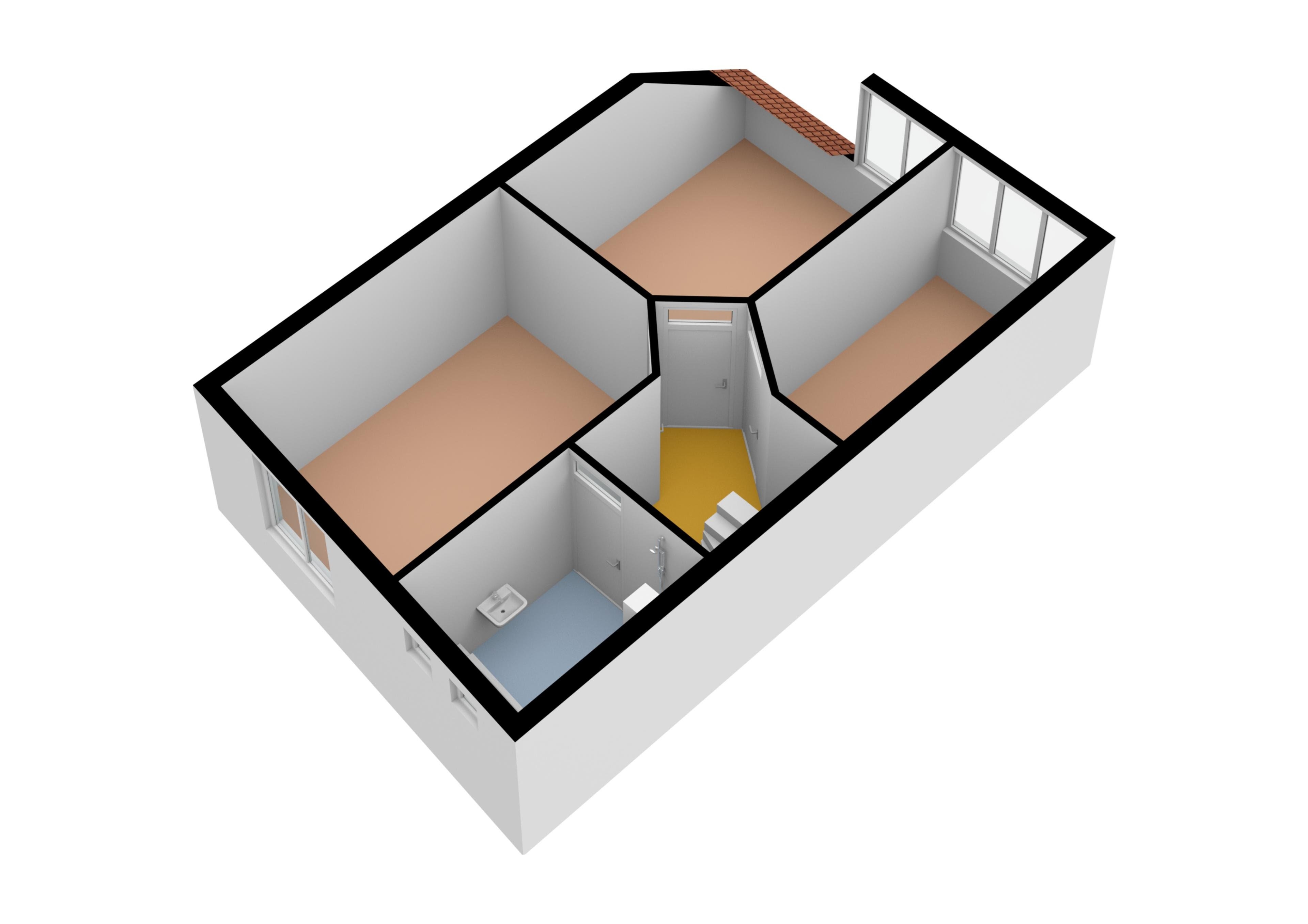 Overloop, 3 grote slaapkamers, badkamer met douche, 2e toilet, ligbad en wastafel.