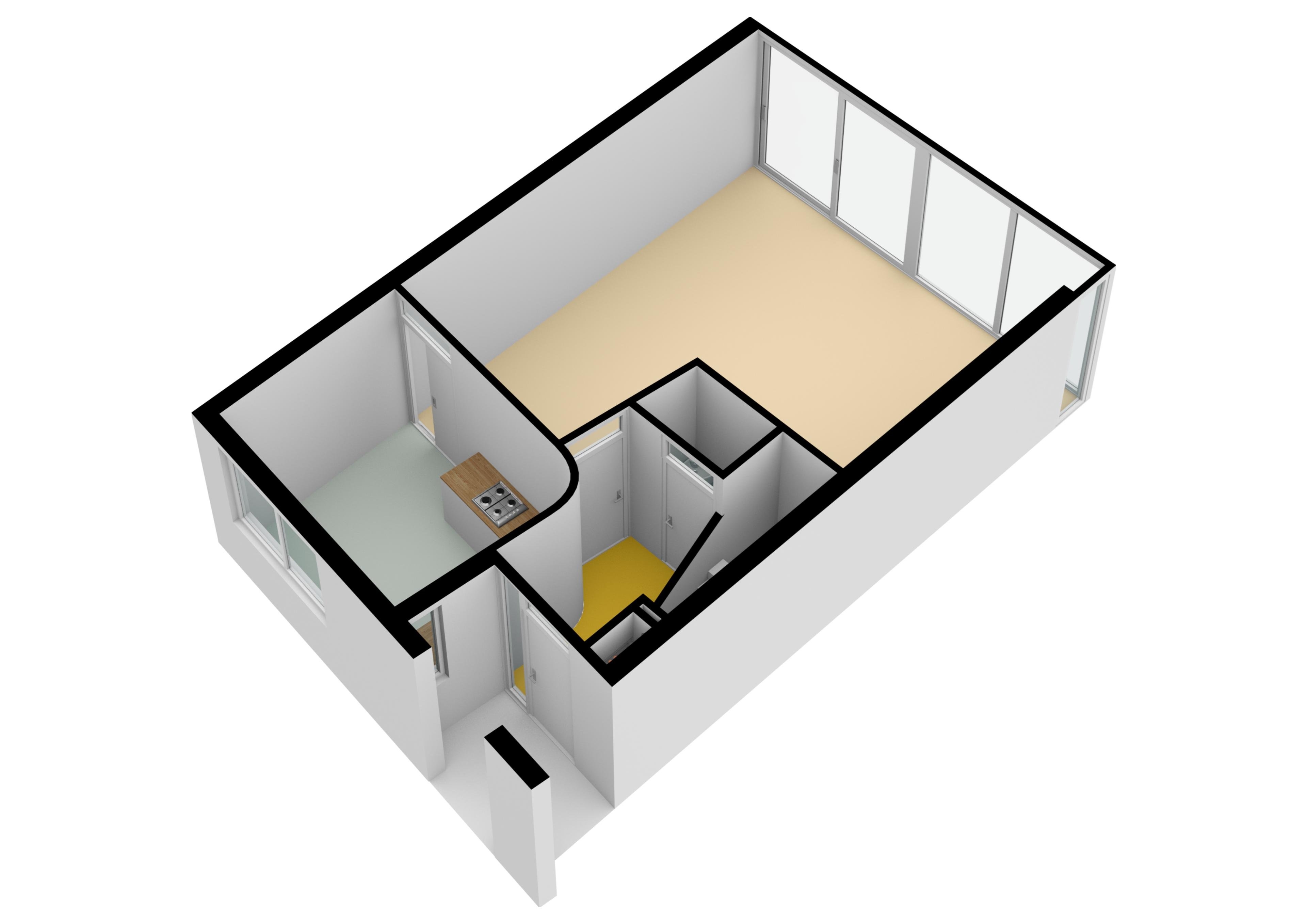 Entree/hal met meterkast, trapopgang, trapkast en toilet, lichte woonkamer met schuifpui en grote raampartij, keuken voorzien van gaskookplaat, afzuigkap, oven, koelkast en vrieskast.