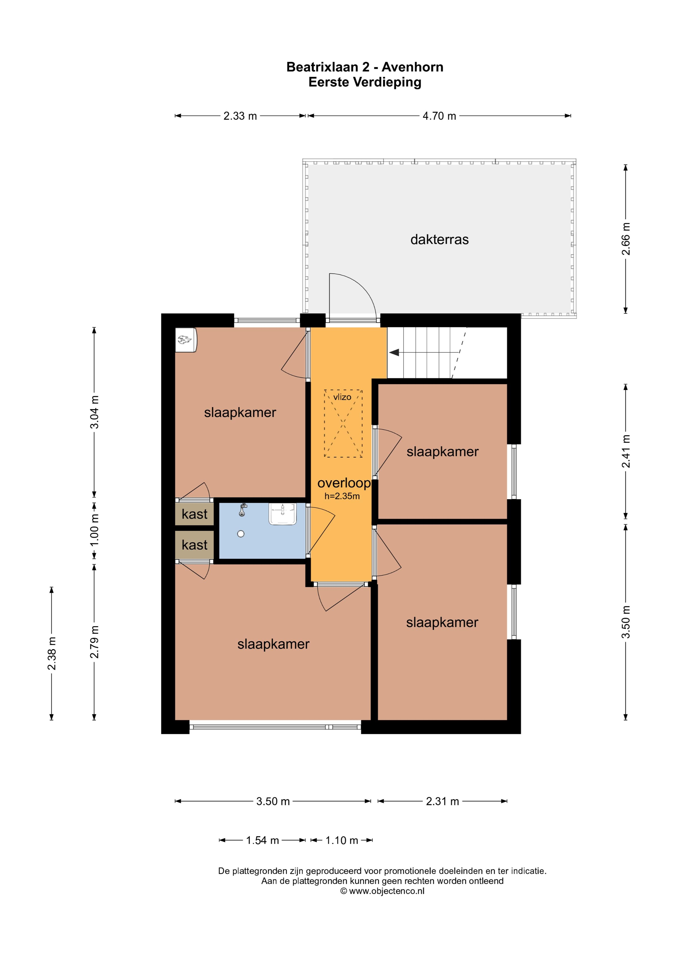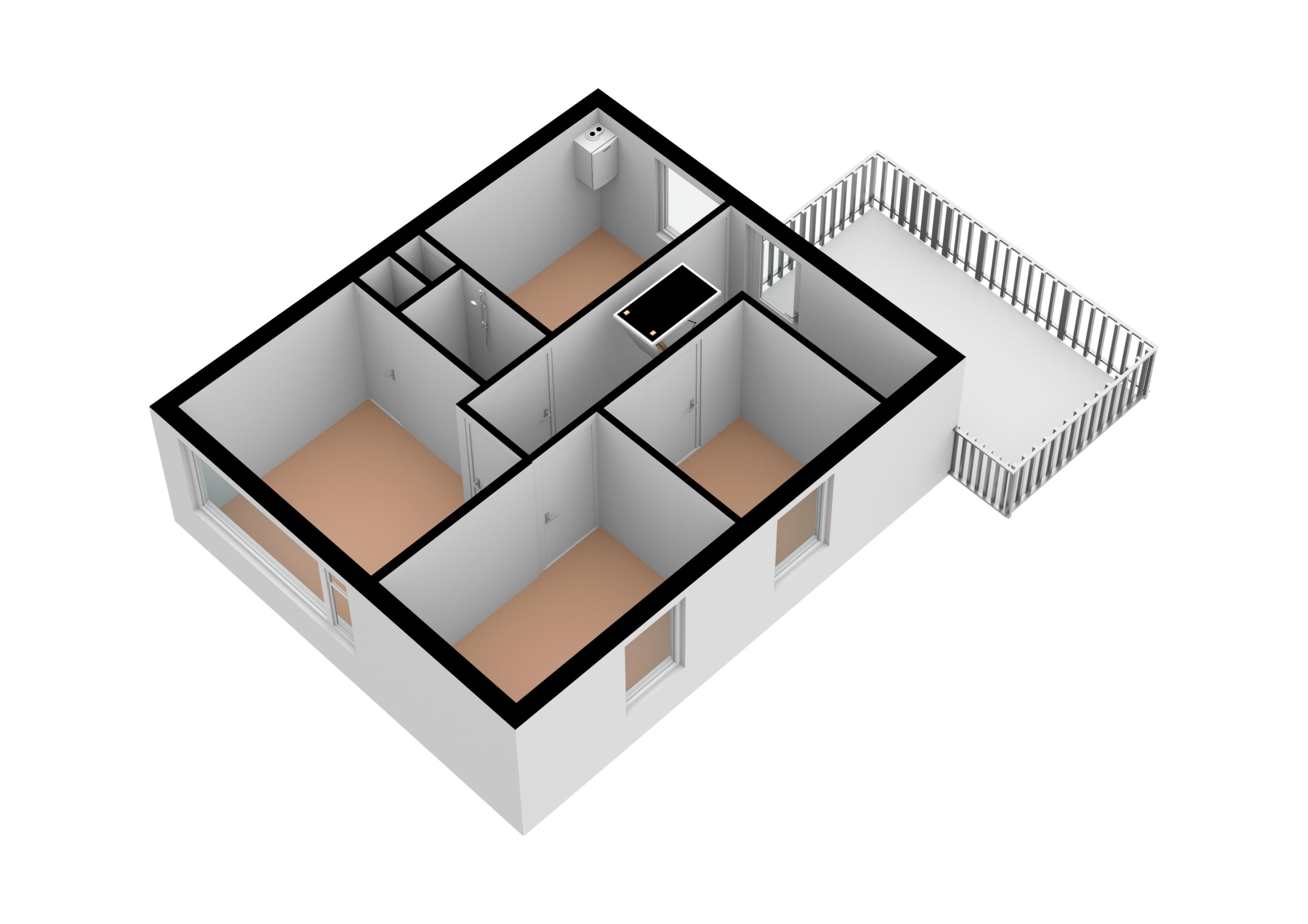 Overloop met toegang naar dakterras, 4 slaapkamers met vaste kastruimte, douche.