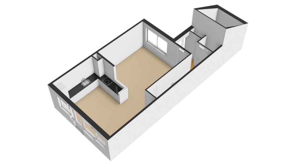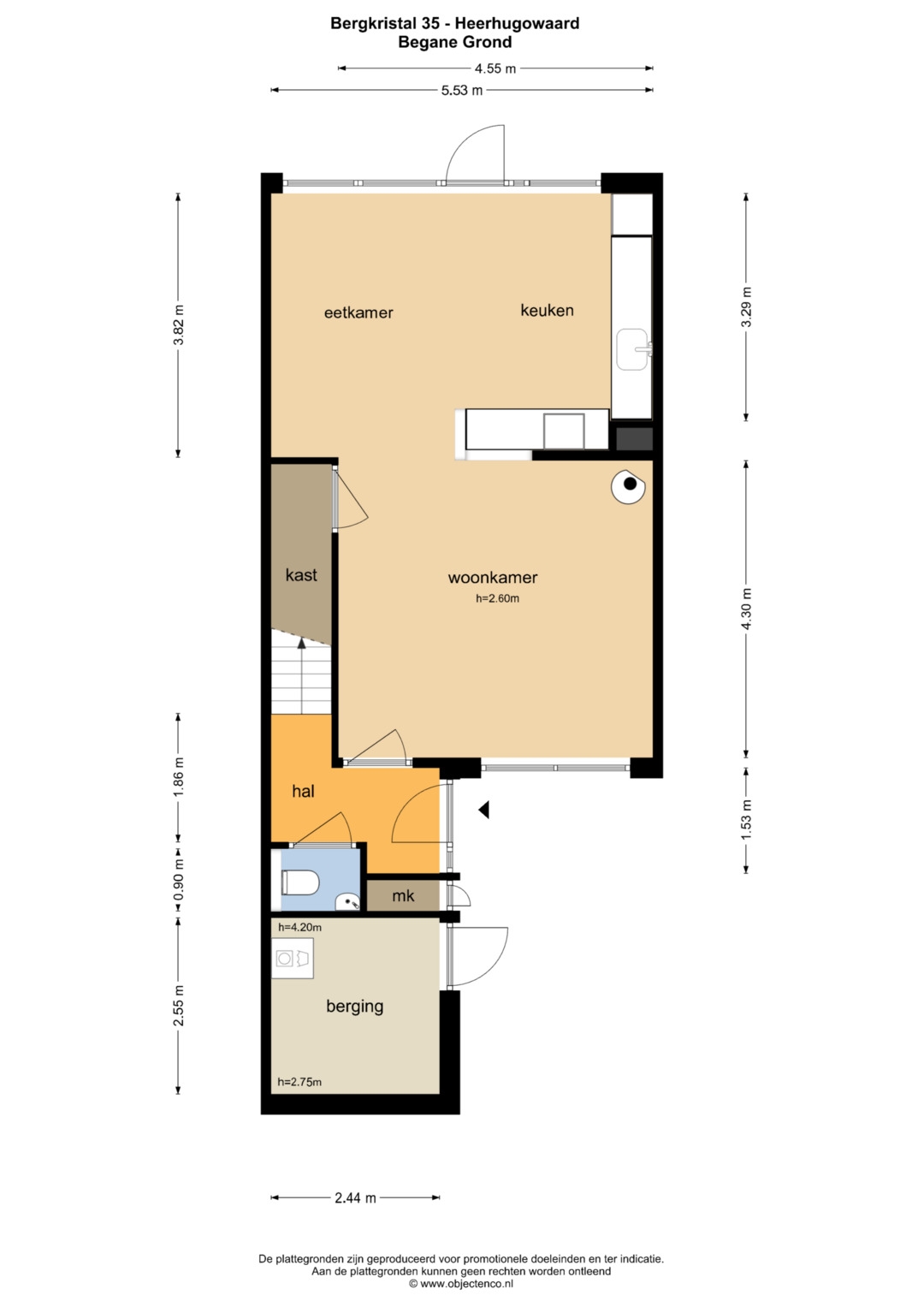 Entree/hal met meterkast, modern toilet en trapopgang, woonkamer met bergkast, royale hoekkeuken voorzien van inbouwapparatuur zoals o.a. inductiekookplaat, oven, koel kast en vriezer.