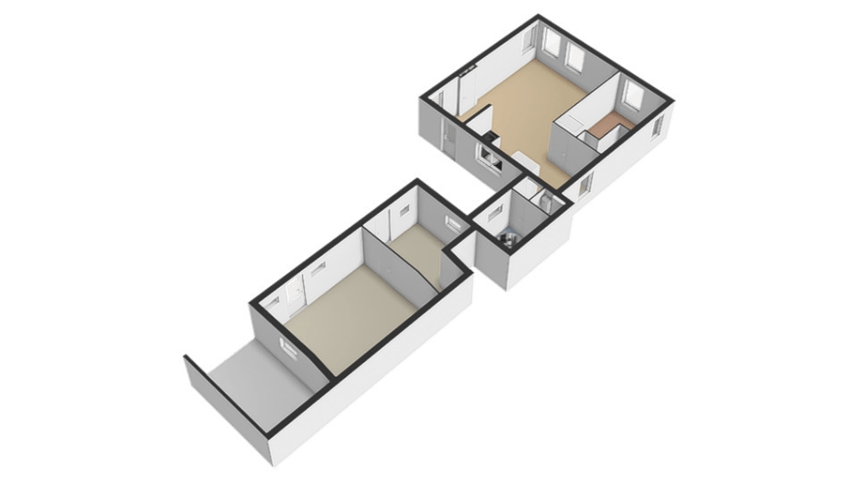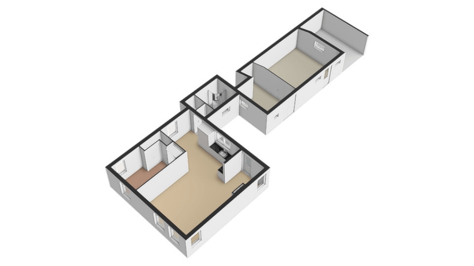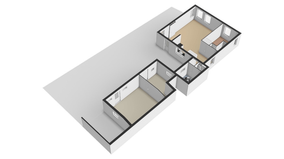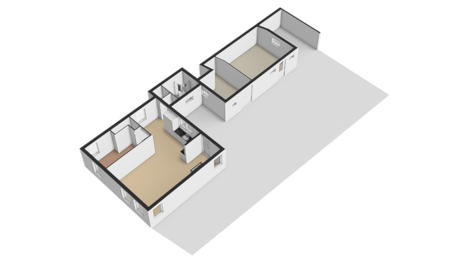 Achter entree/hal met garderobekast, woonkamer met meterkast, hoekkeuken voorzien van inbouwapparatuur, slaapkamer, hal met toielt, badkamer met douche, wastafel en wasmachineaansluiting.