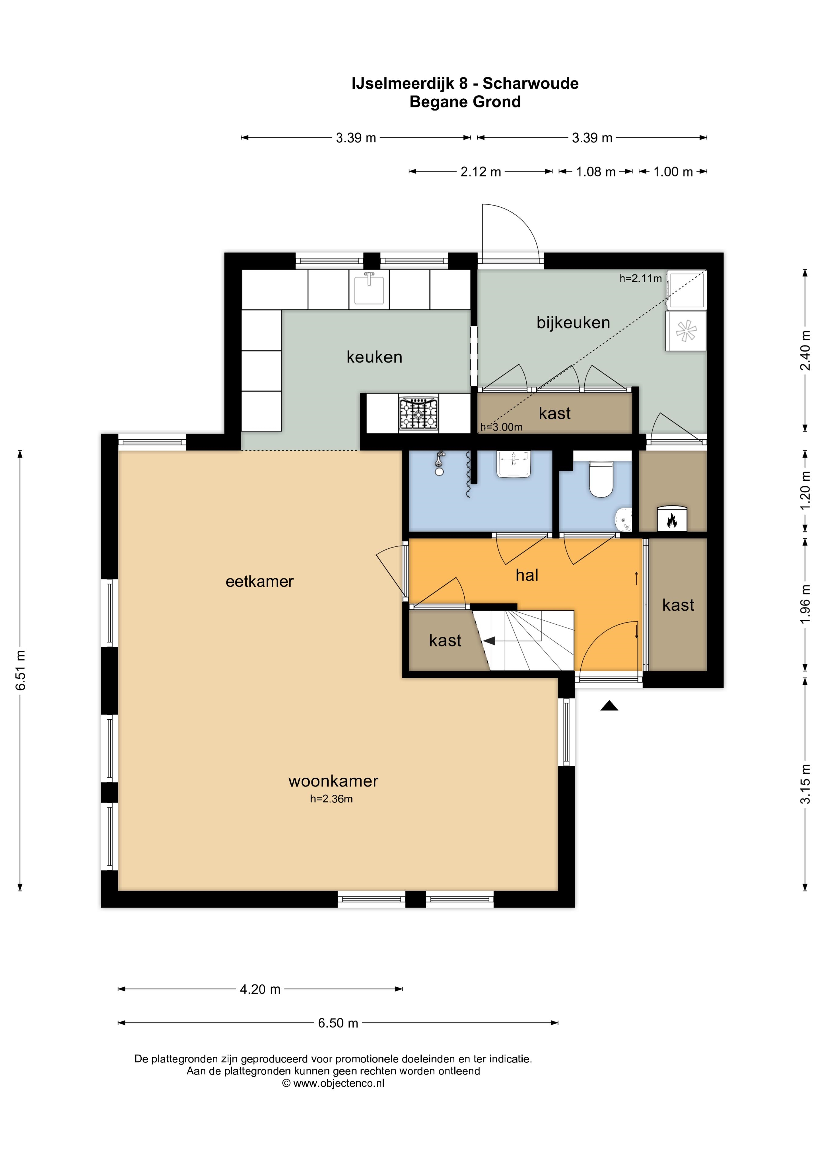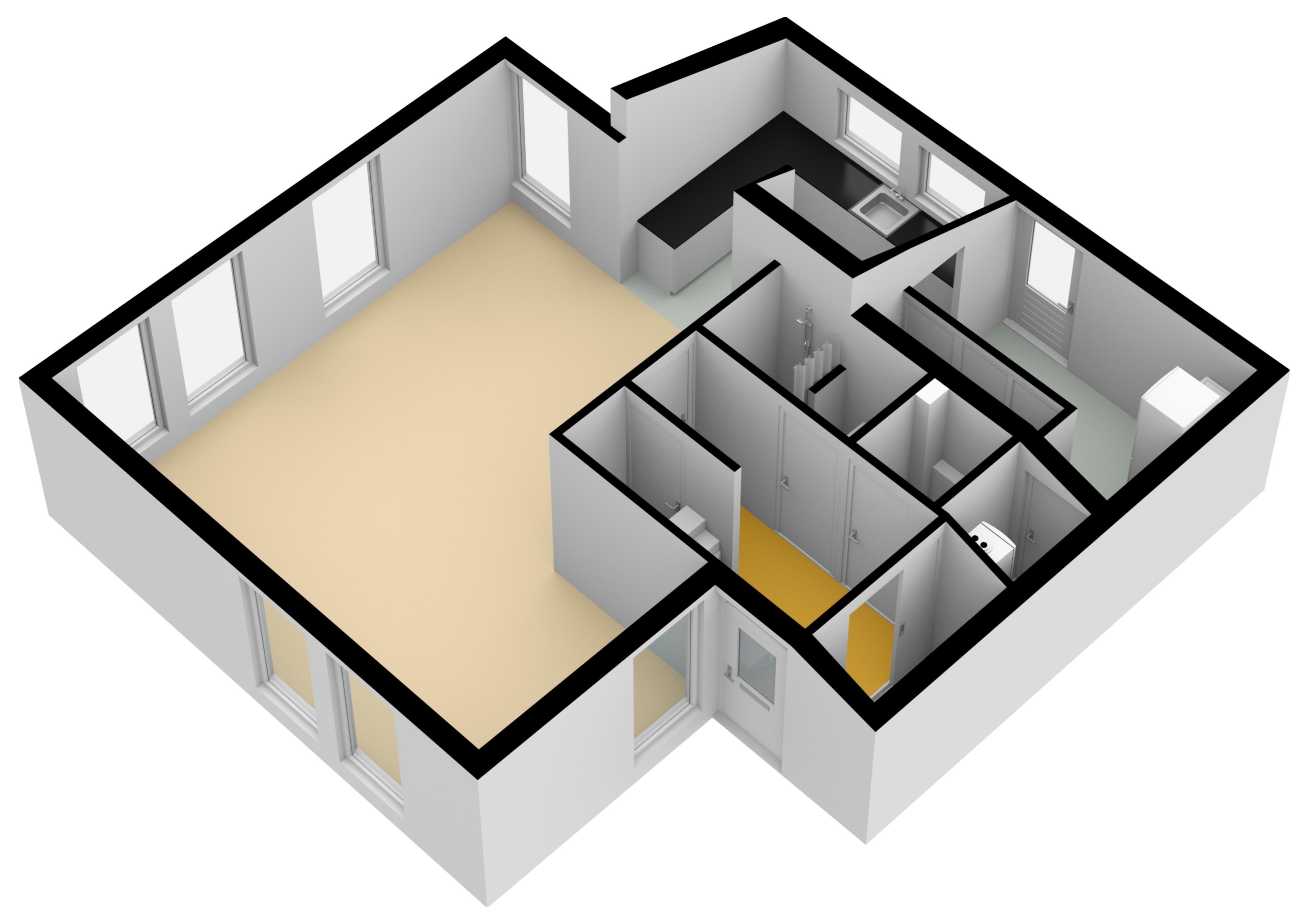 Entree/hal met meterkast, garderobekast, toilet, badkamer met douche, wastafel en designradiator, trapopgang en trapkast. Lichte woonkamer, keuken welke is voorzien van inbouwapparatuur o.a. vaatwasser, 5-pitsgaskookplaat, combi oven, afzuigkap en koelkast.