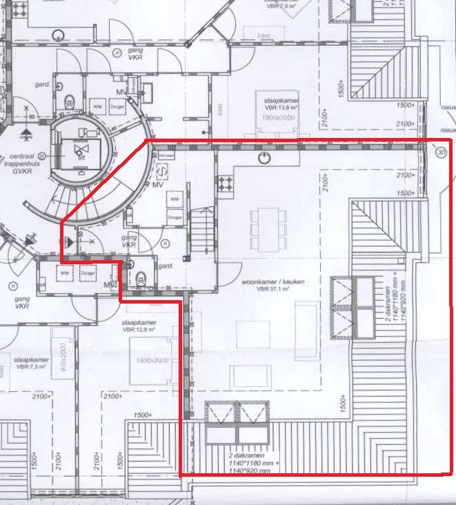 Welke "niet-doorsnee" woningzoekende is op zoek naar een "niet-doorsnee" appartement met een zee aan leefruimte? Kantbeugel 1c in De Goorn is dan zeker een optie! Van deze maisonette is geen tweede! In 2015 is de voormalige Rabobank omgebouwd naar een kleinschalig appartementencomplex. De maisonette die nu in de verkoop komt beschikt op eerste verdieping veel woonruimte. Op de tweede verdieping vindt u de 2 slaapkamers ( alleen bereikbaar via trap), badkamer en een groot dakterras van ca. 55 m²!
