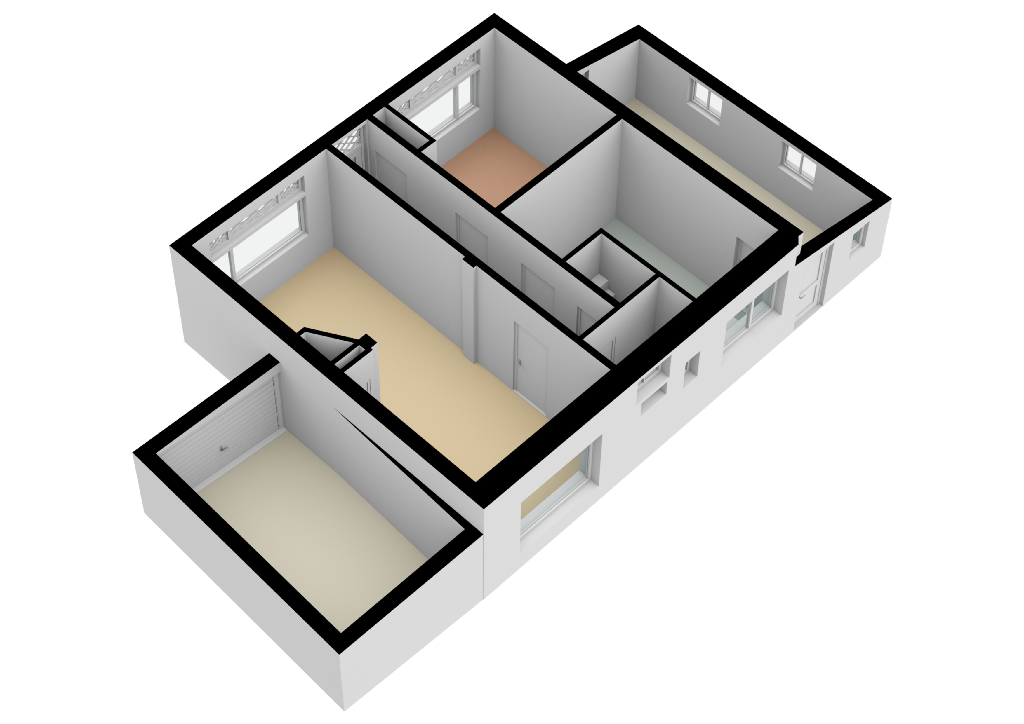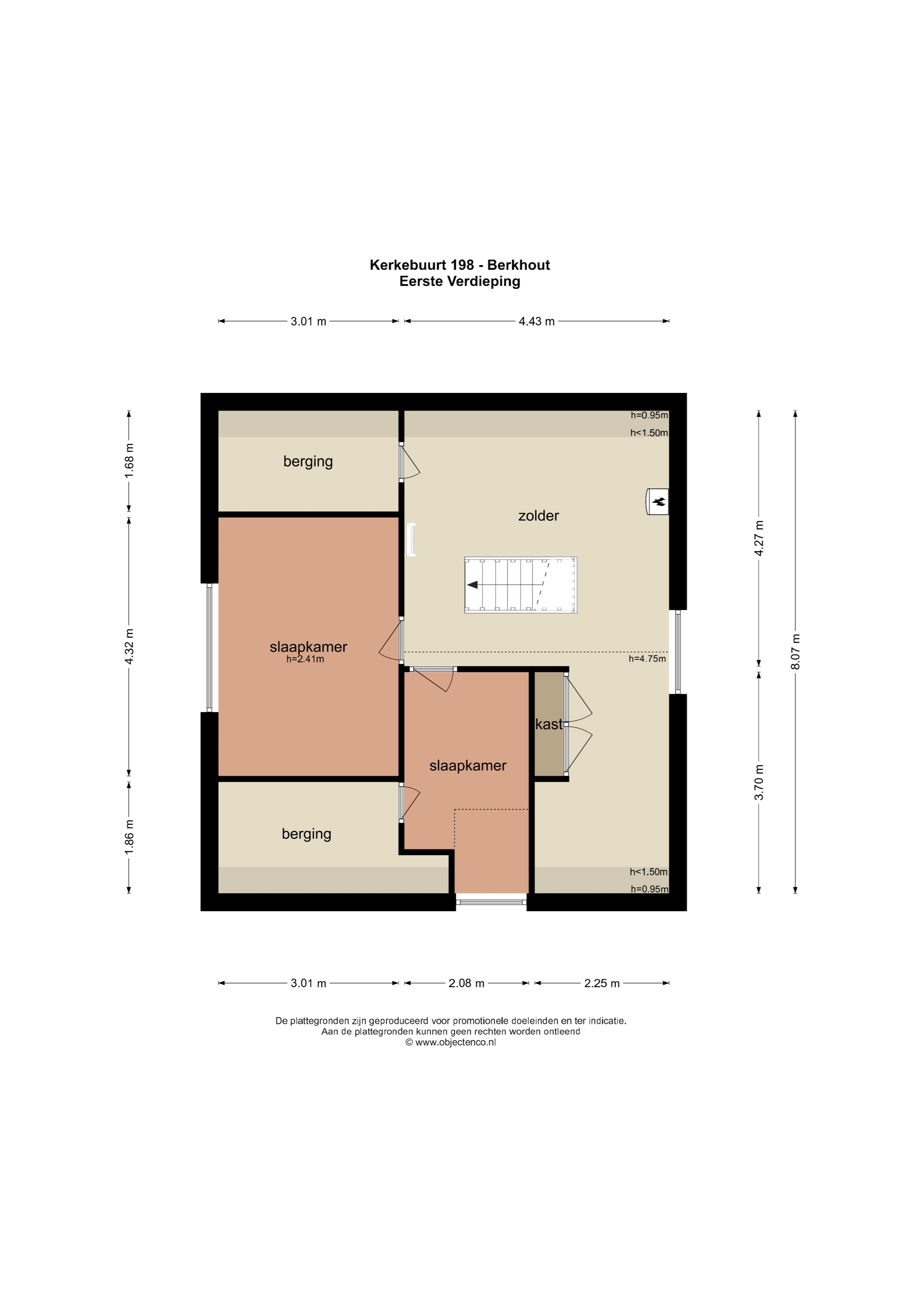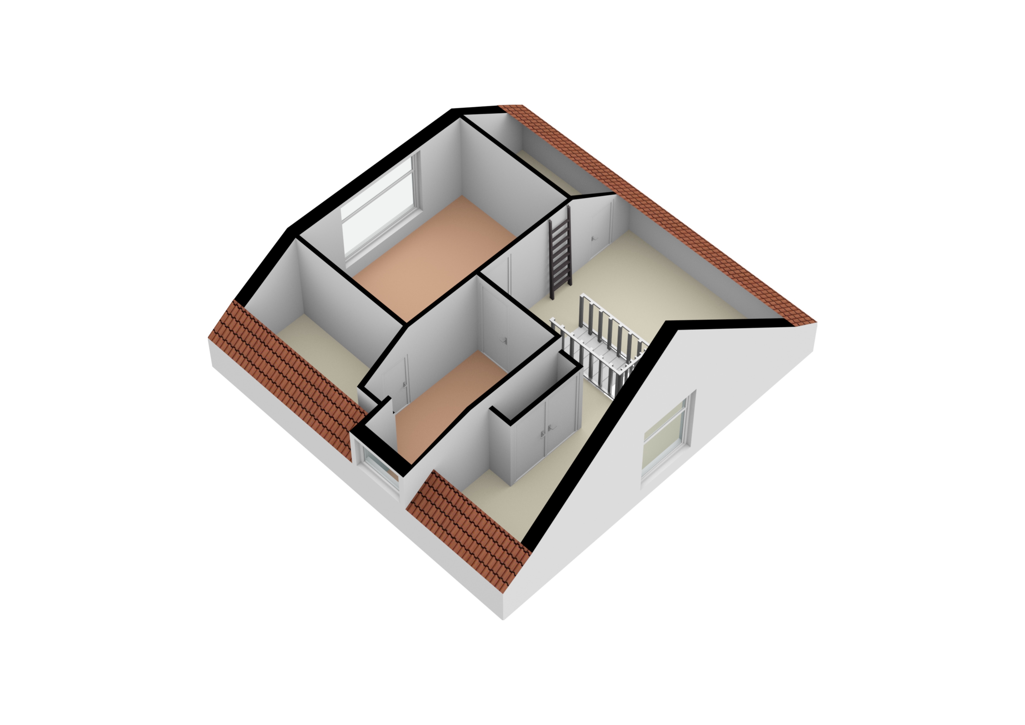 Ruime overloop met bergkasten, 2 slaapkamers