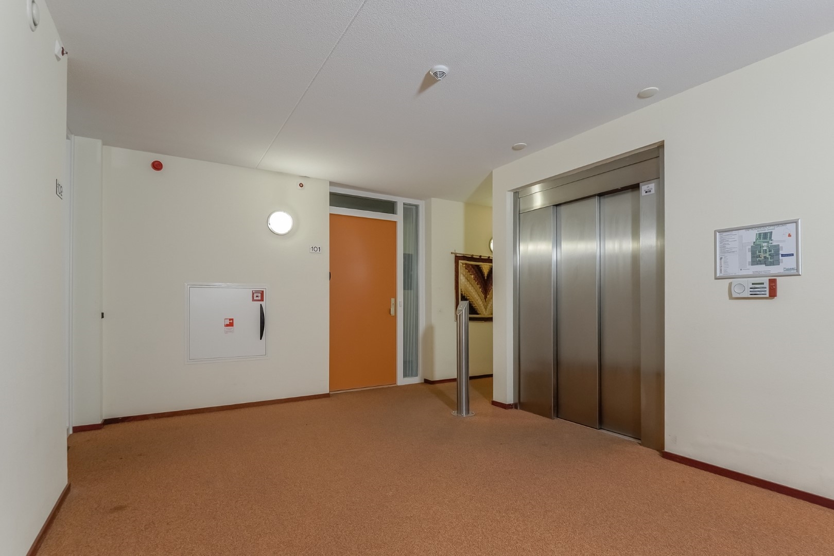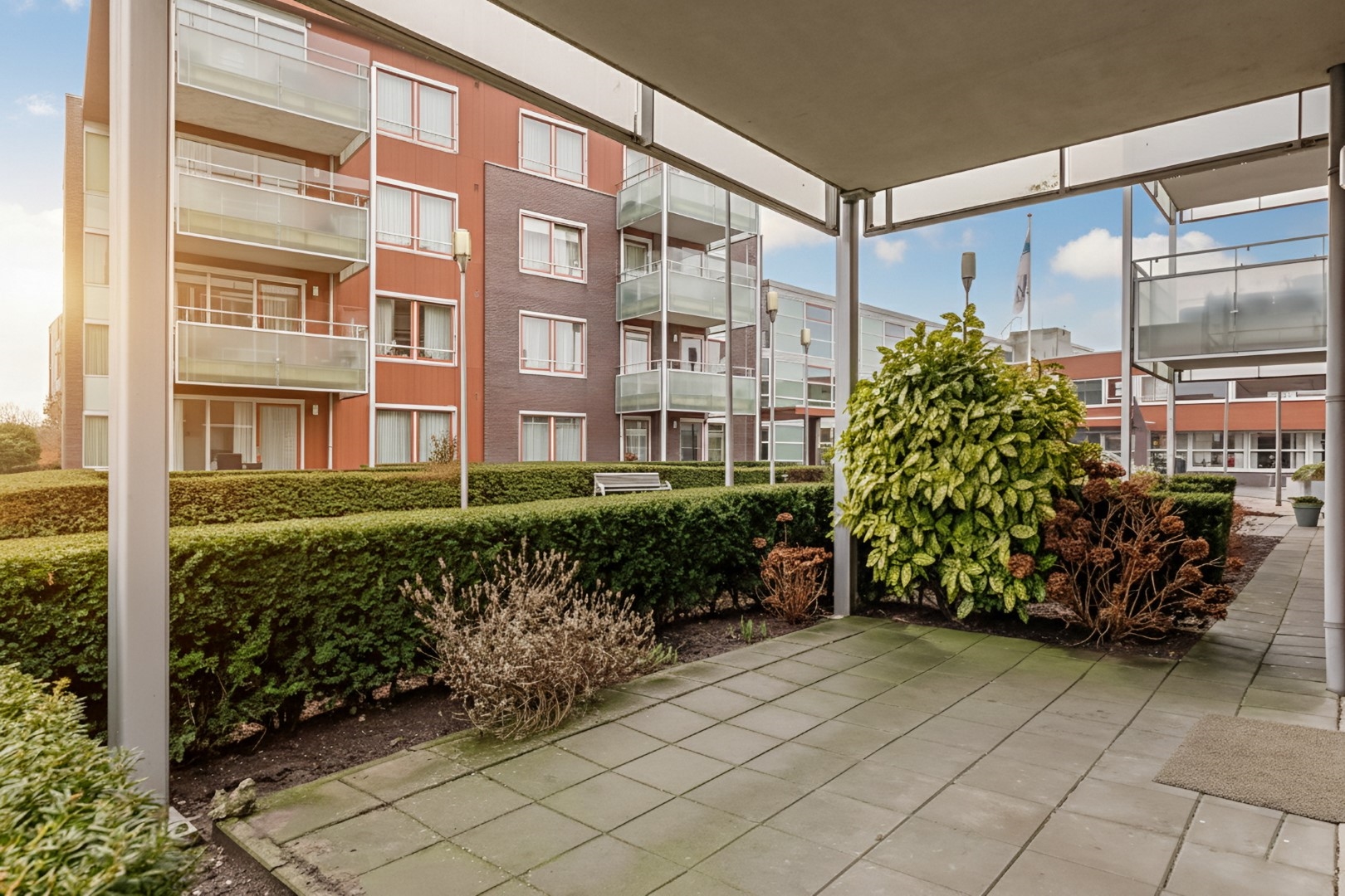 - Een middels een video-intercom beveiligde entree, een centrale hal met toegang naar de appartementen en de bergingen
