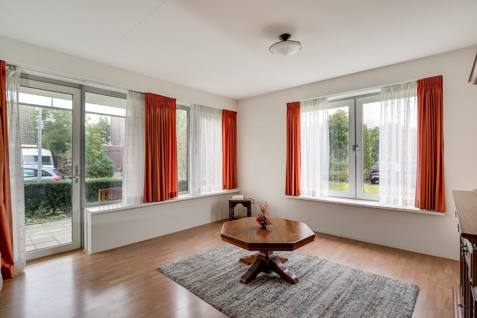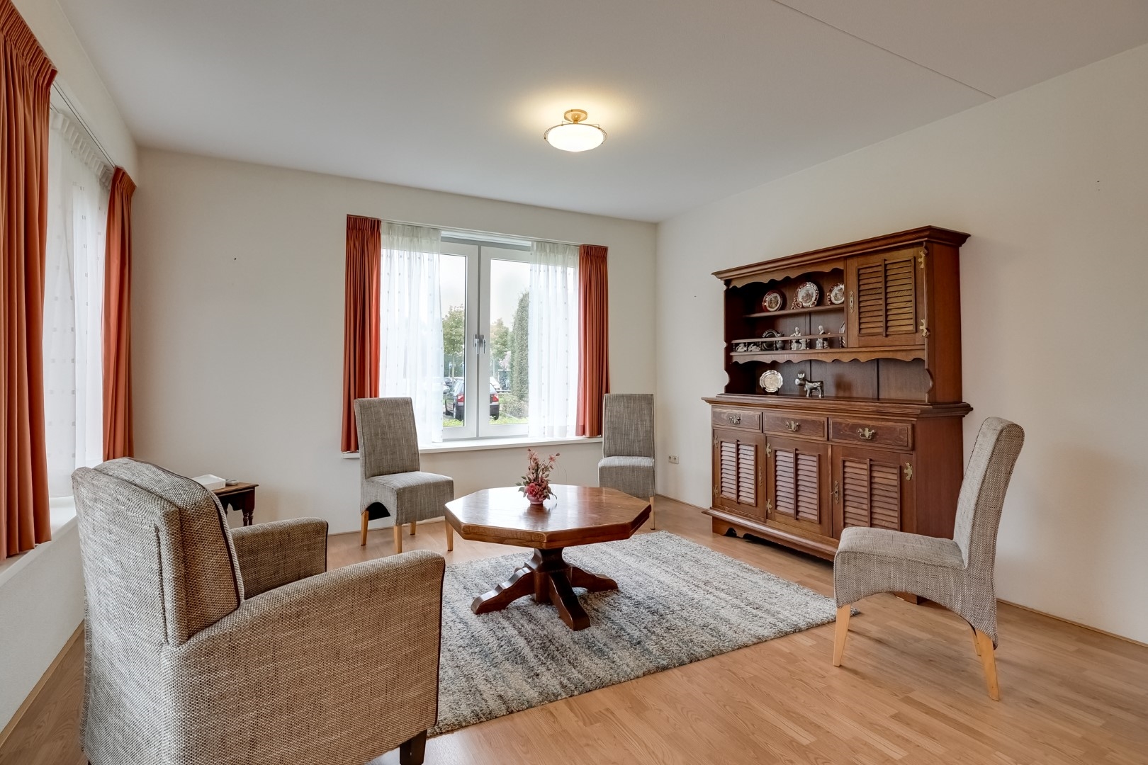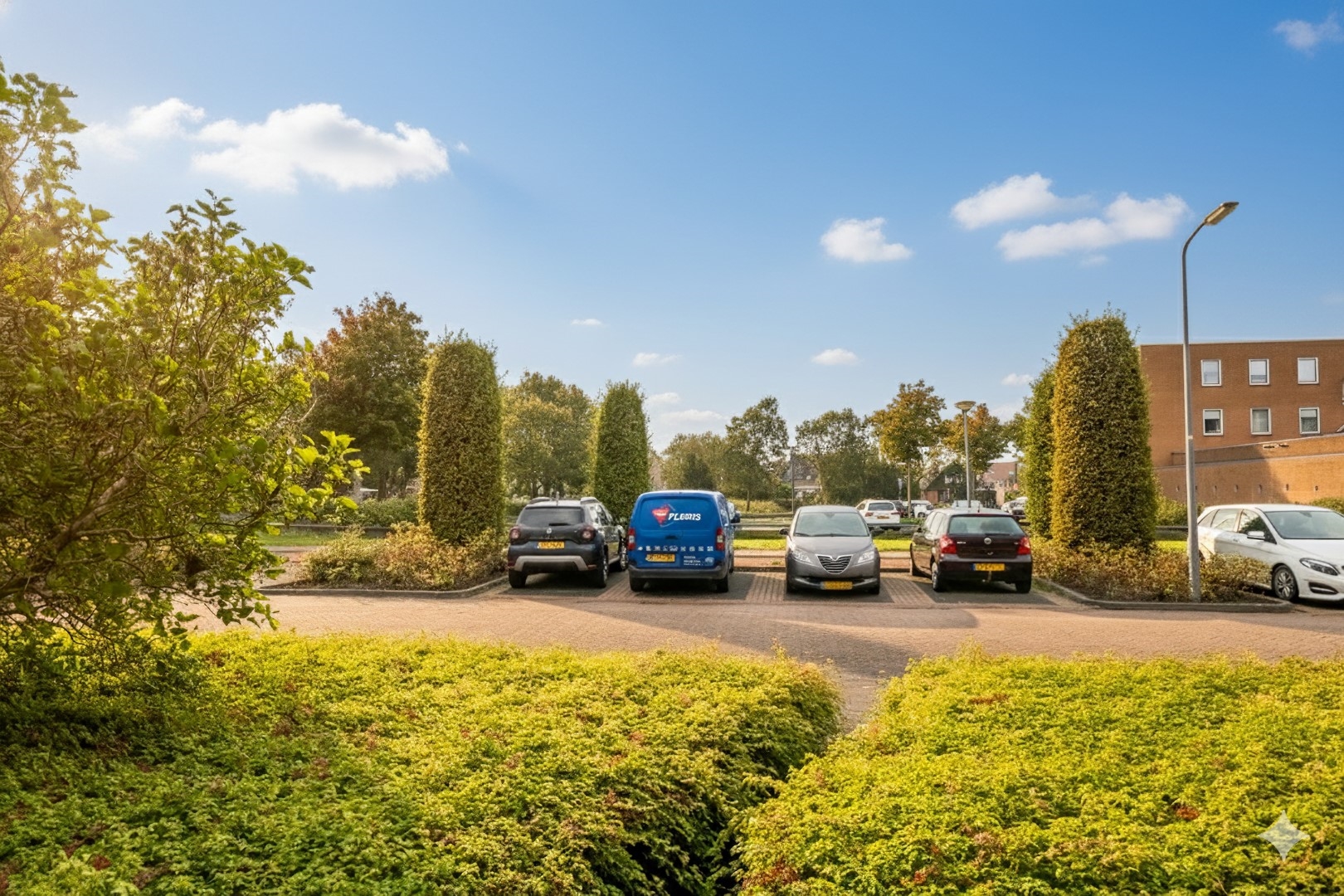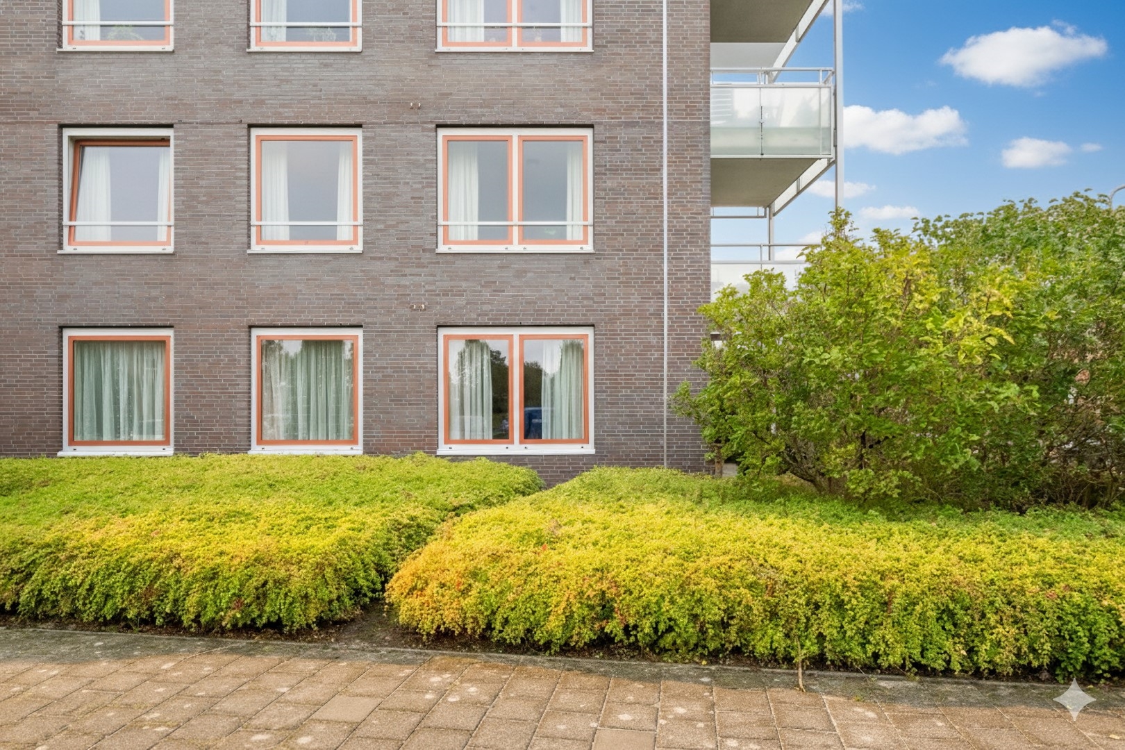 Eigen terras aan de zonkant met uitzicht op openbaar groen.