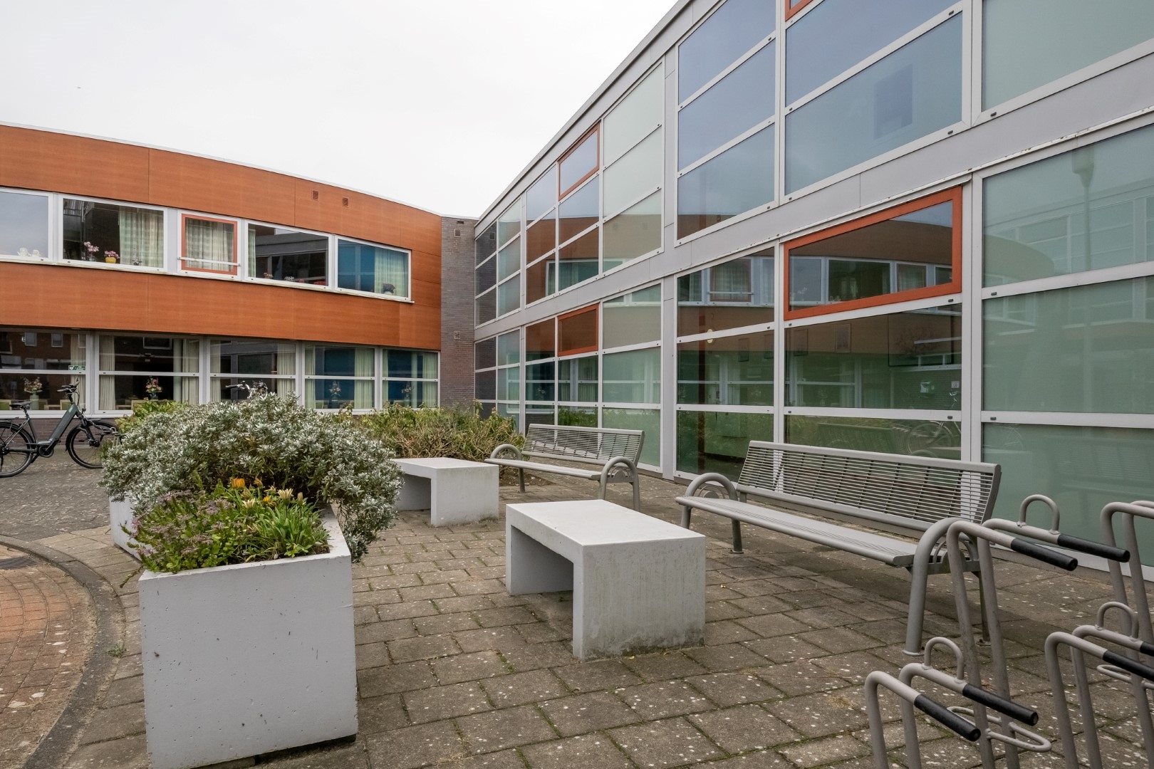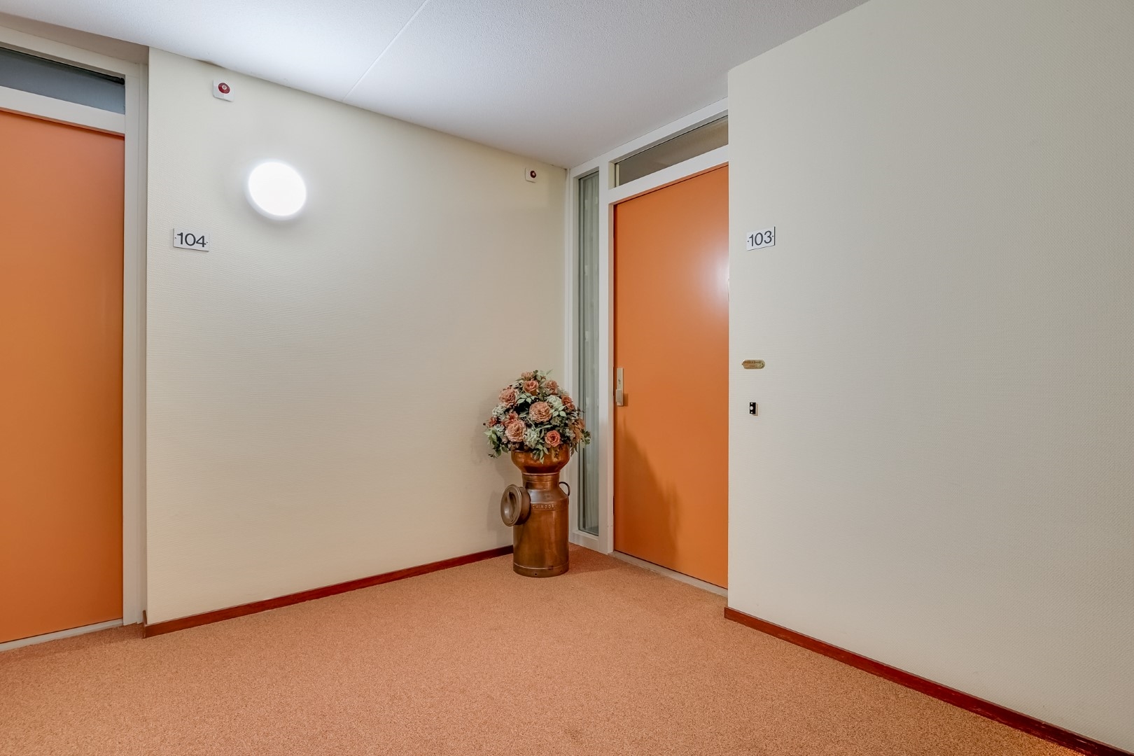 - een middels een video-intercom beveiligde entree, een centrale hal met toegang naar de appartementen en de bergingen