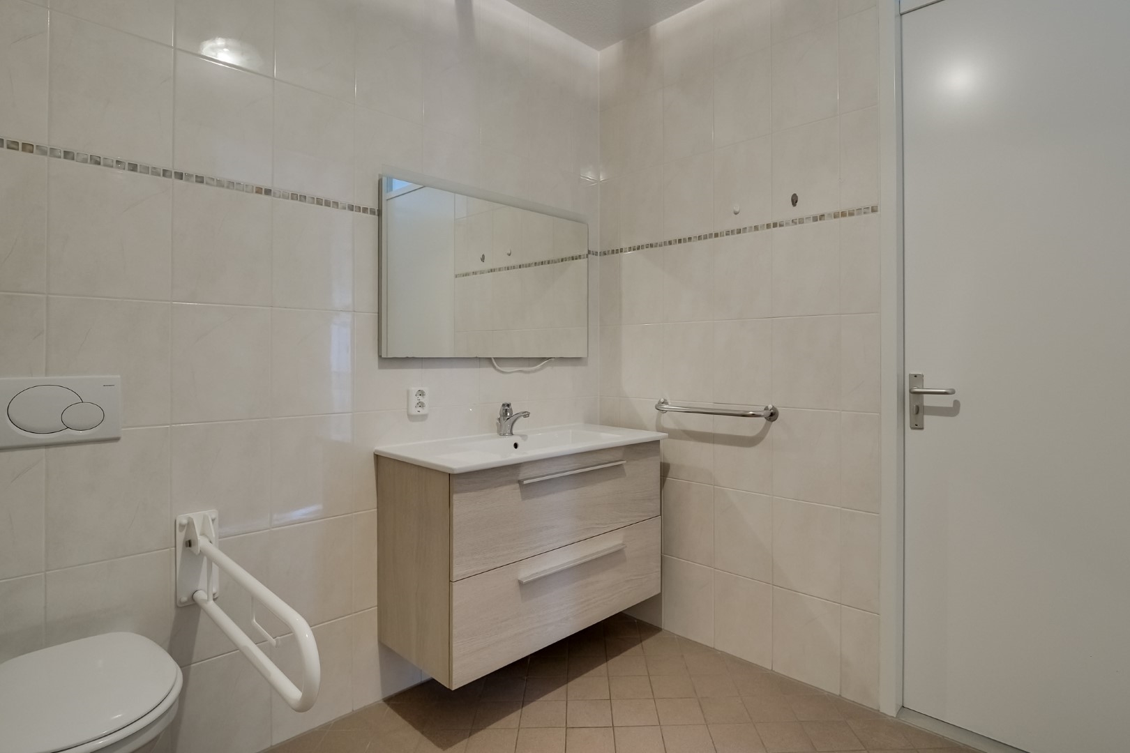 Entree/hal met modern toilet, meterkast, verwarmingsruimte, badkamer met 2e toilet, douche en wastafelmeubel, 2 slaapkamers waarvan de grootste ook direct toegang naar de badkamer heeft. Ruime, lichte woonkamer met toegang naar eigen terras, bergruimte met wasmachineaansluiting, nette keuken voorzien van inbouwapparatuur zoals o.a. inductiekookplaat, magnetron, kleine vaatwasser, koel/vriescombinatie en natuurstenen blad.