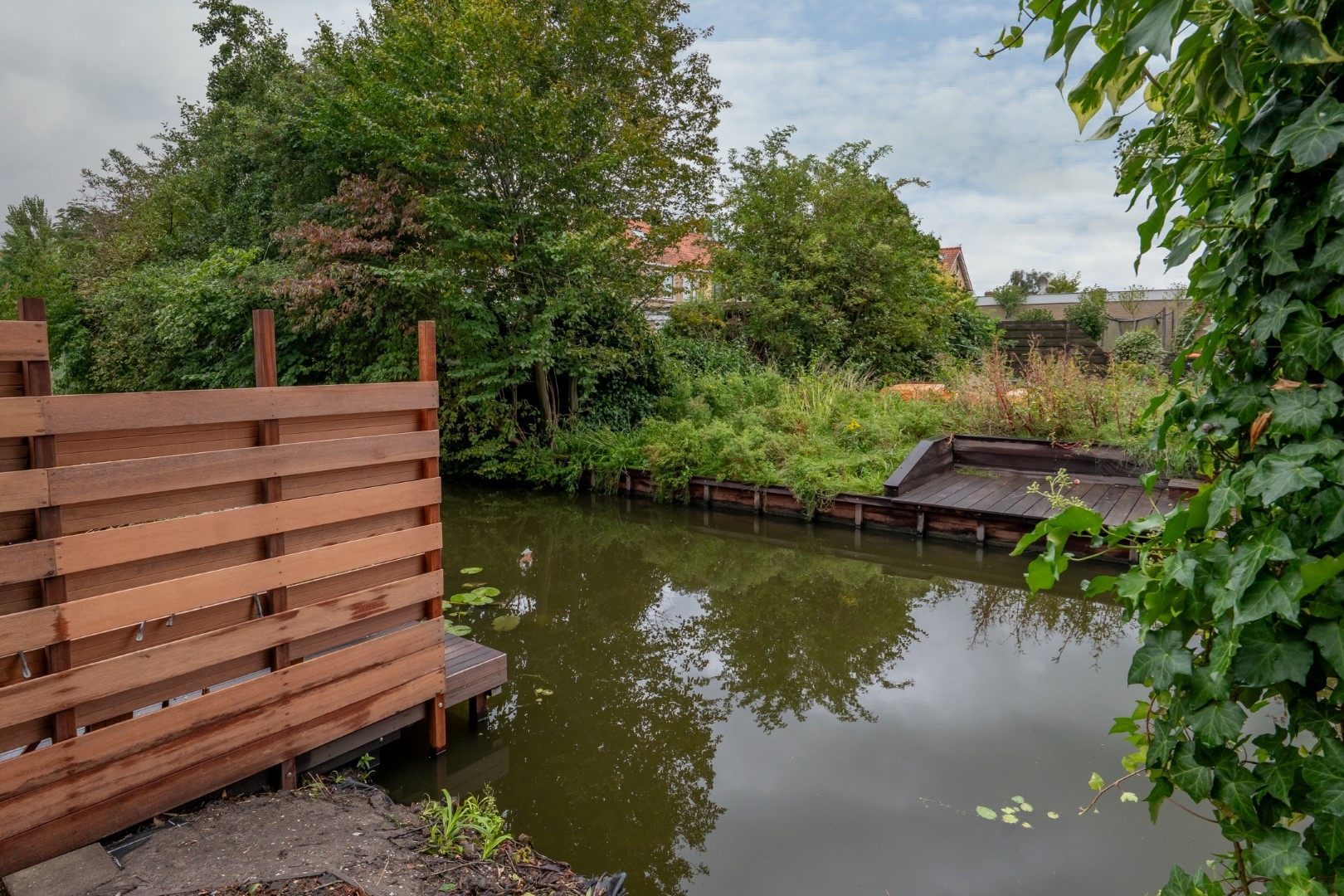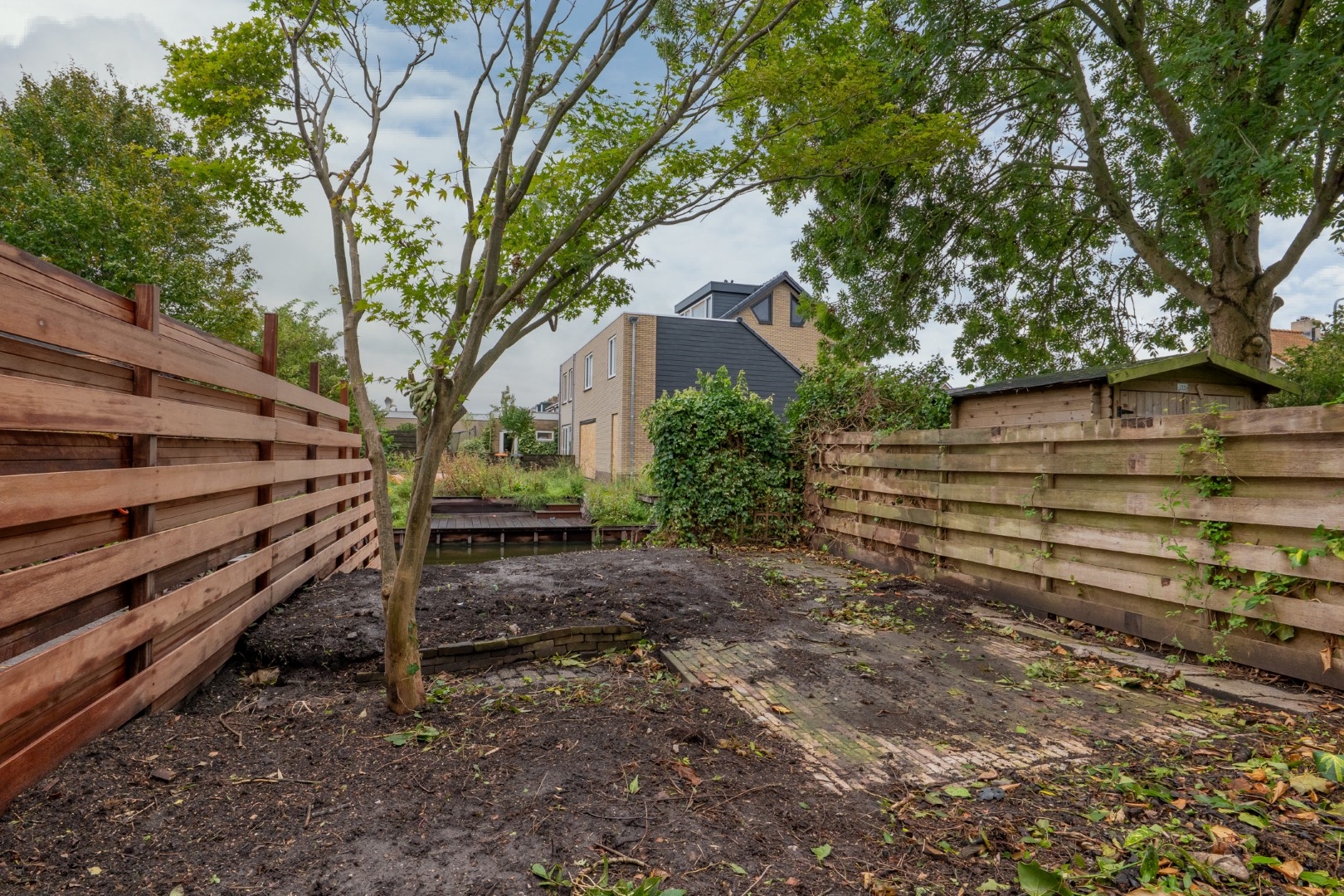 Diepe tuin aan vaarwater op het zuidoosten.