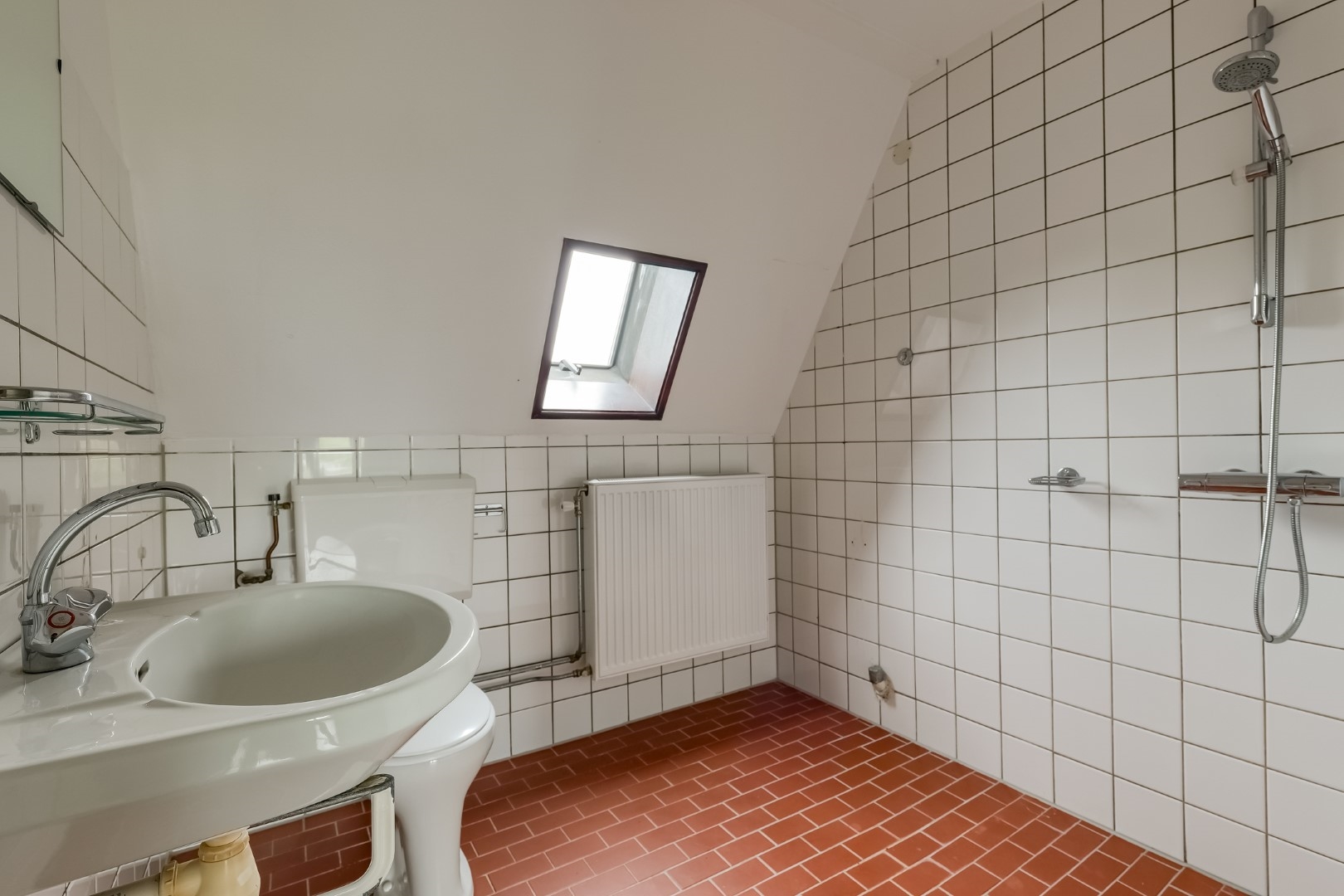 Overloop, 3 slaapkamers, badkamer met 2e toilet, douche en wastafel.