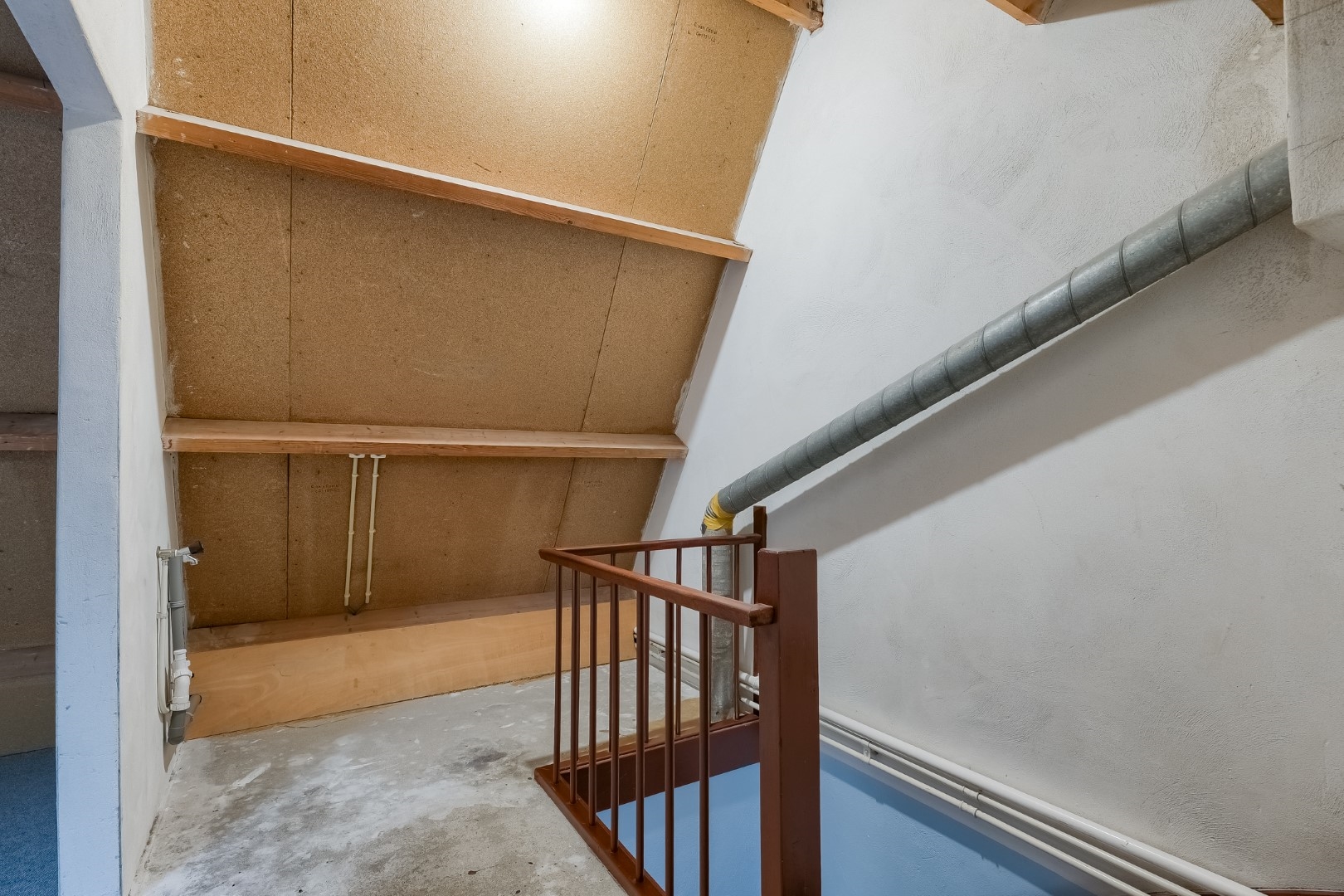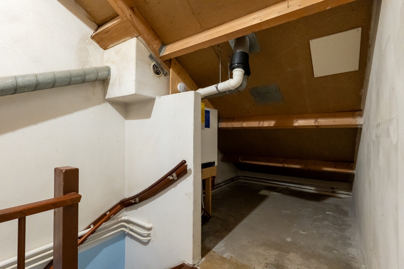 Vaste trap naar 2e verdieping met overloop met cv opstelling en wasmachineaansluiting, 4e slaapkamer.