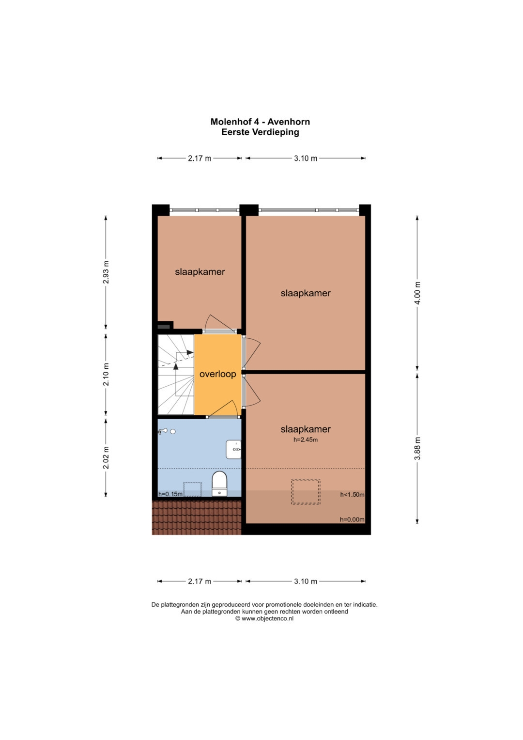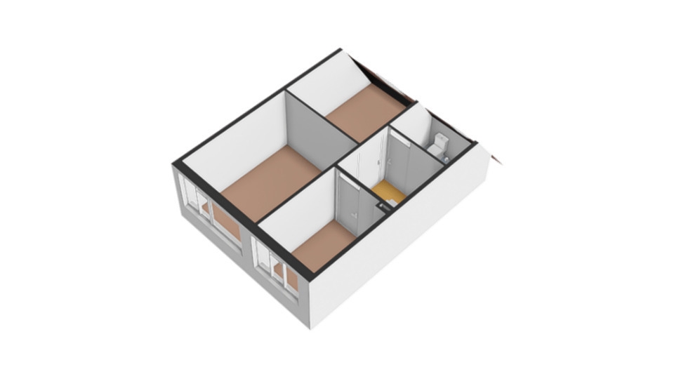 Overloop, 3 slaapkamers, badkamer met 2e toilet, douche en wastafel.