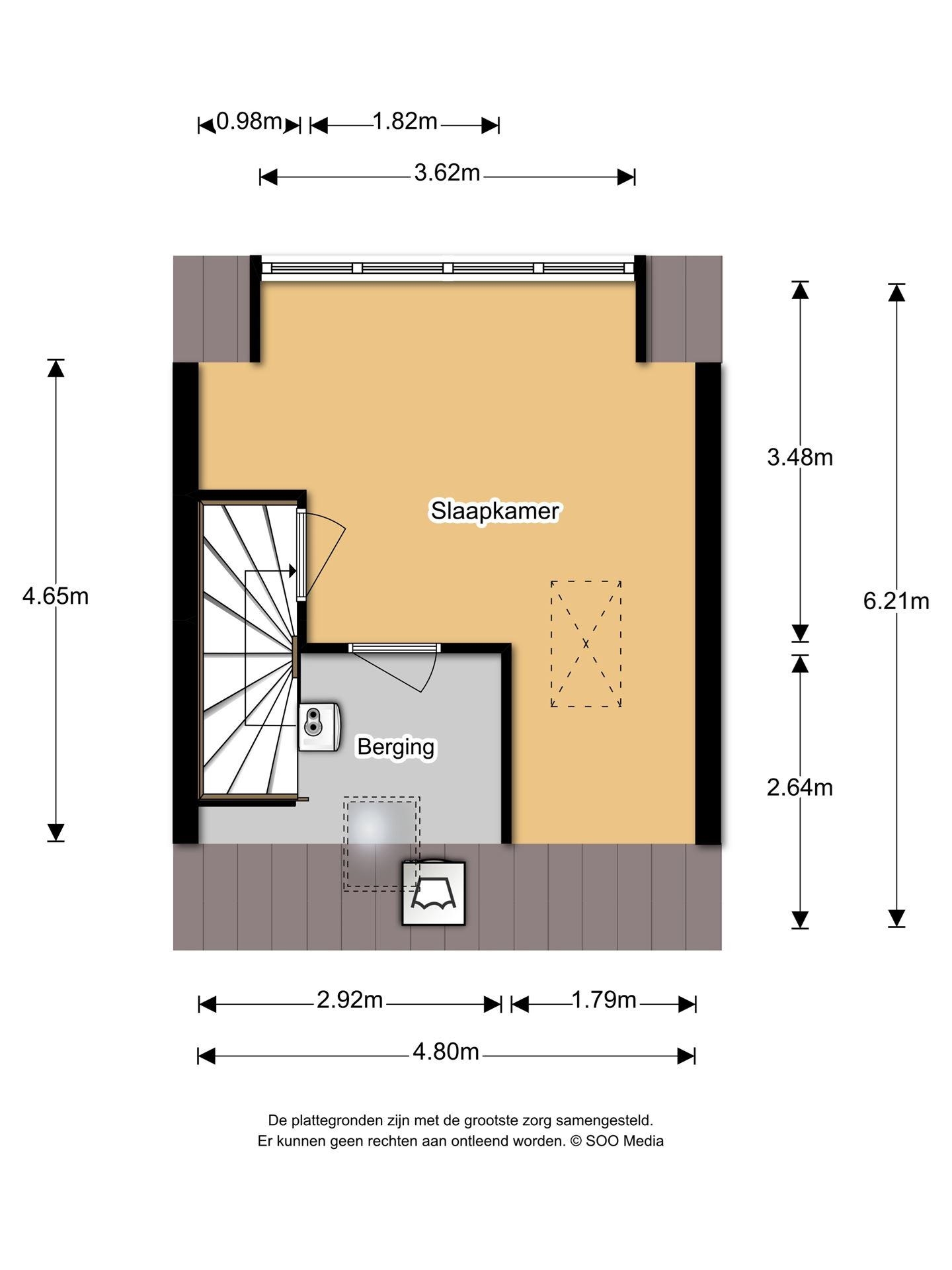 Vaste trap naar 2e verdieping alwaar een grote 4e L-vormige slaapkamer met kunststof dakkapel gerealiseerd is. Verder treft u bergruimte met de cv en wasmachineopstelling.