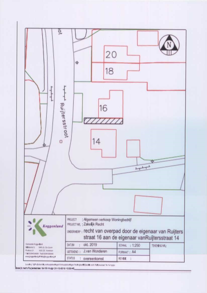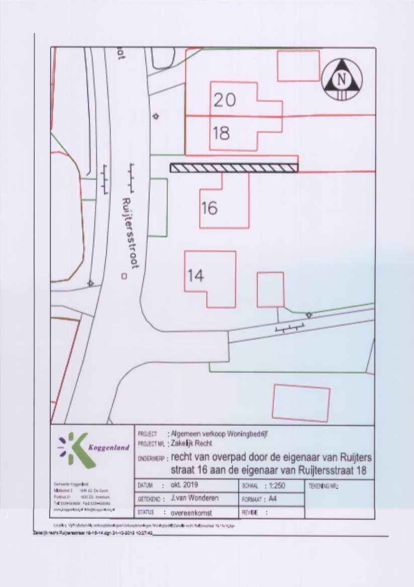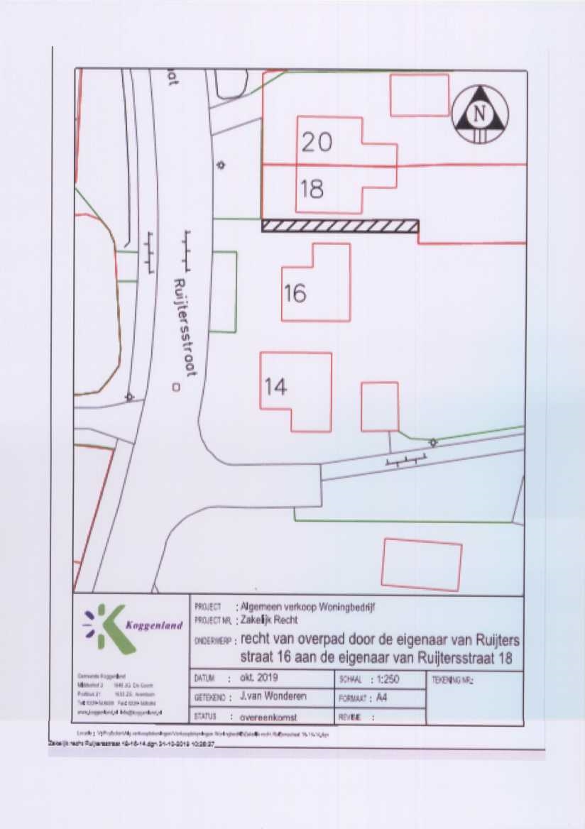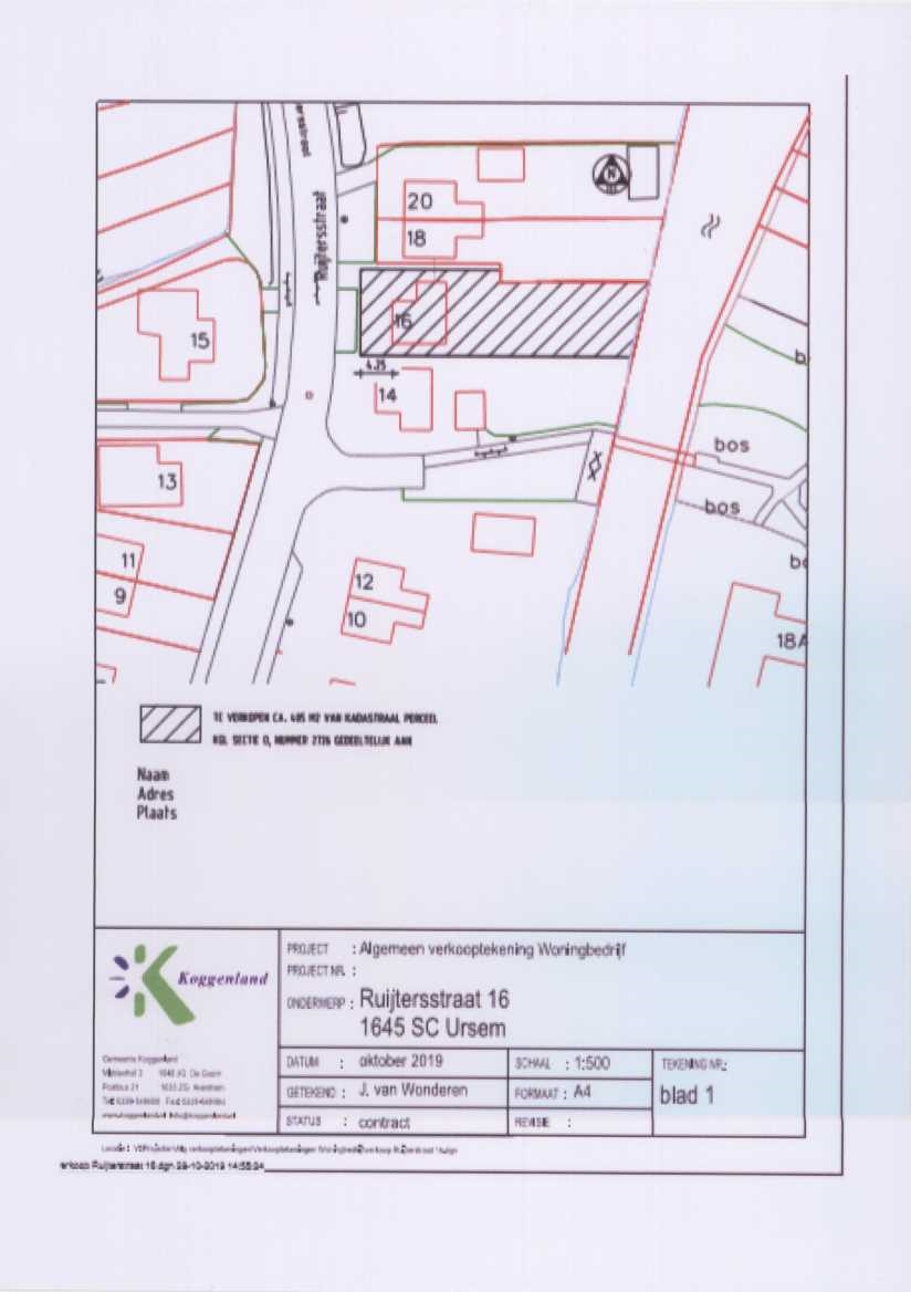 - Het definitieve perceel (ca. 405 m²) zal nog moeten worden ingemeten door het kadaster, kosten voor het inmeten zijn voor rekening van koper