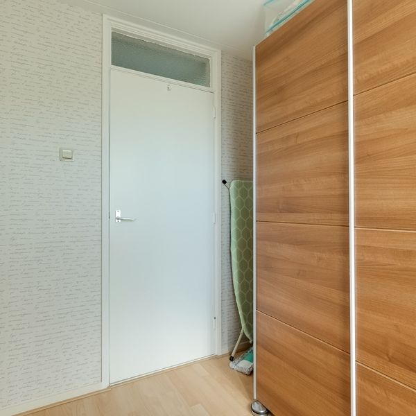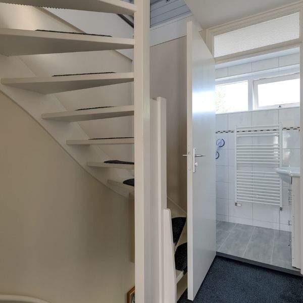 Vaste trap naar 2e verdieping met overloop met cv opstelling en 4e slaapkamer met bergruimte.
