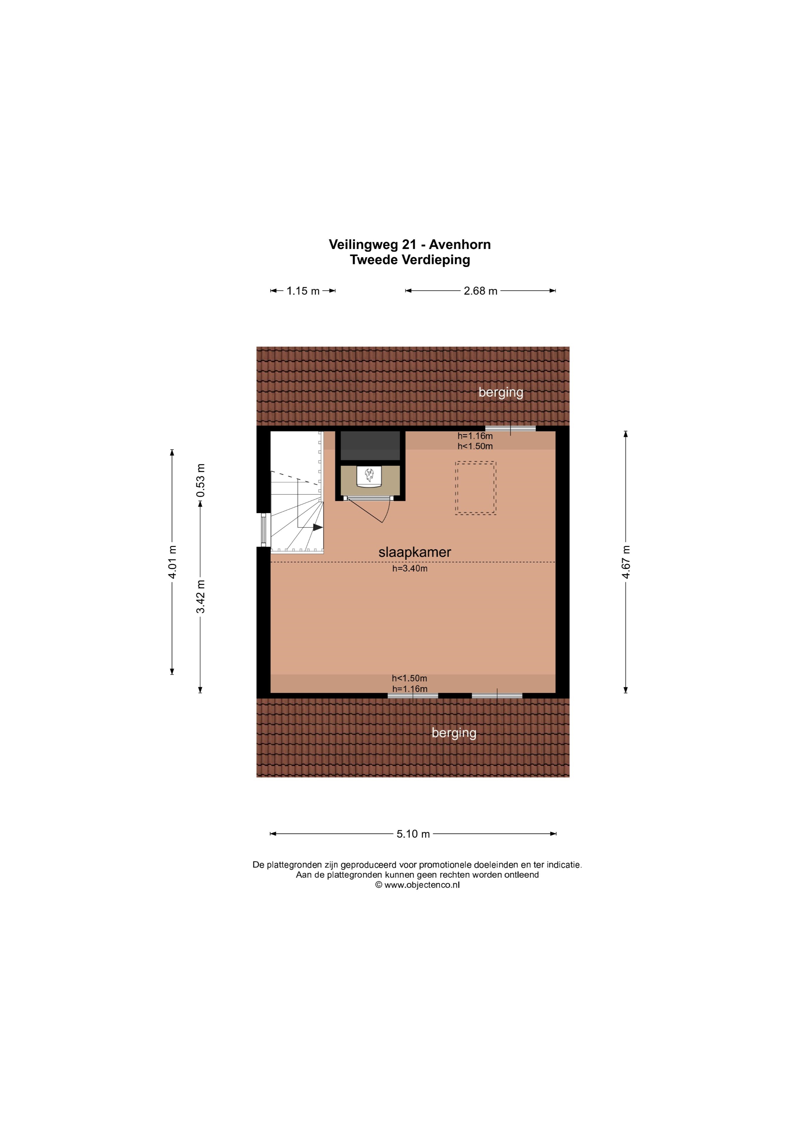 Vaste trap naar tweede verdieping welke in gebruik is als slaapkamer. Verder treft u daar de cv ruimte en bergruimte.
